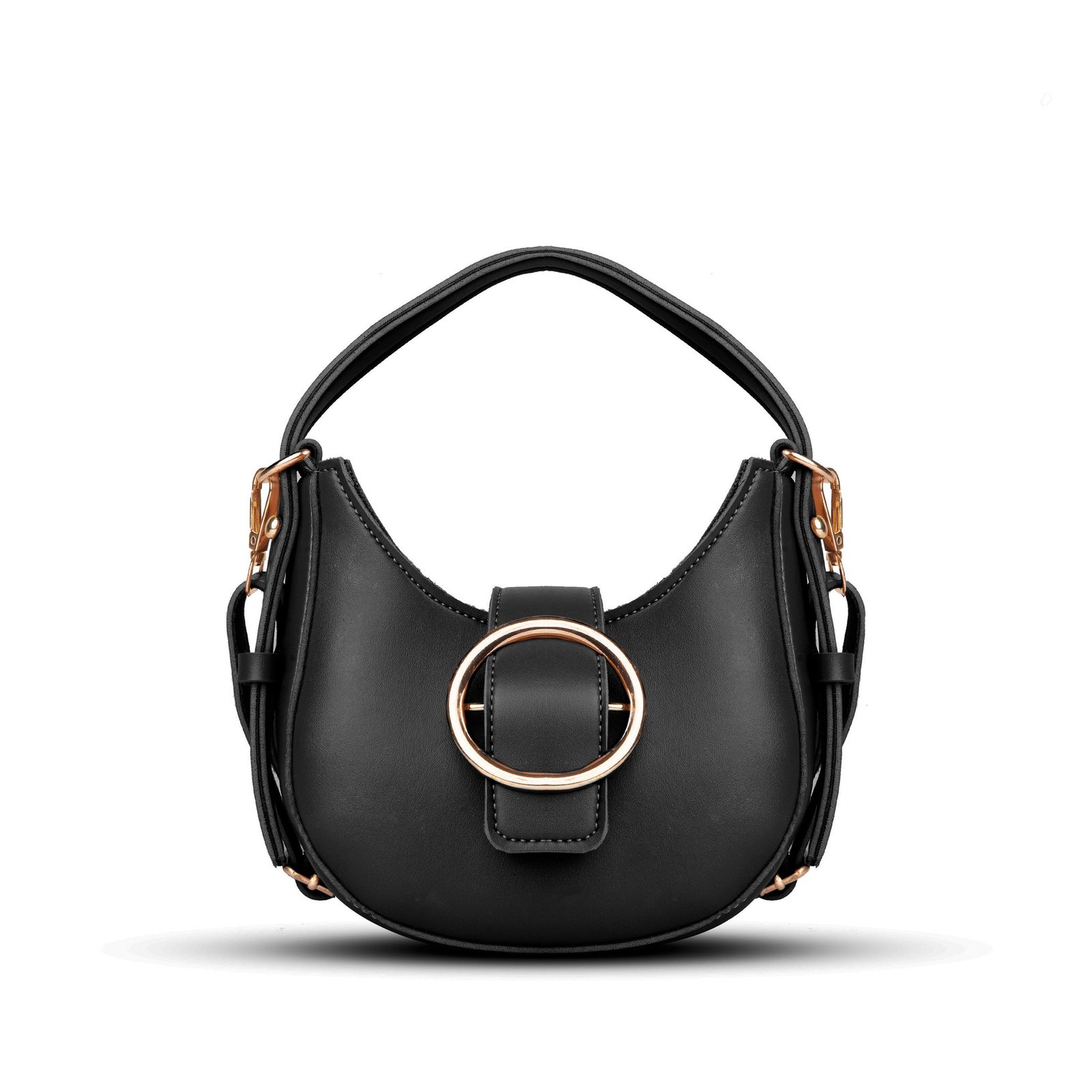 Elevate your everyday style with the Luna Noir Crescent Shoulder Bag, a chic black shoulder purse designed for modern women who love minimalist elegance. Crafted from premium PU leather, this crescent-shaped handbag features a bold gold ring buckle at the front, adding a luxurious statement to your outfit.